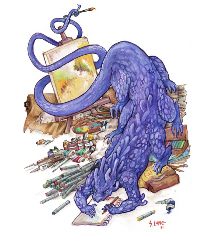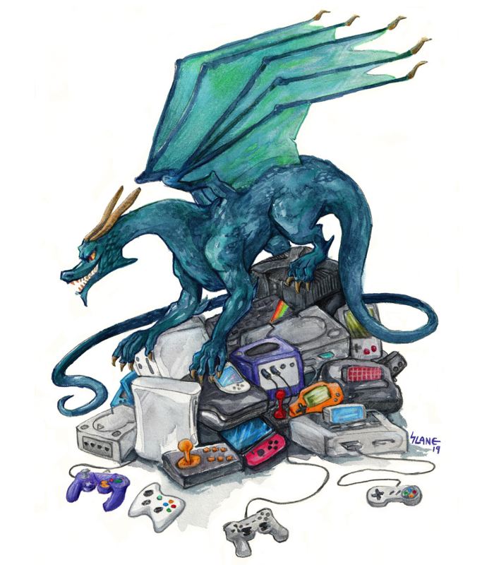 The image of a dragon sleeping on a pile of gold is a classic, which also speaks to human desires; how many of us have collections we value just as dearly as that? I've had a lot of fun exploring a range of hoards with a nerdy expression of that desire, which I feel works especially well with the dragon imagery.