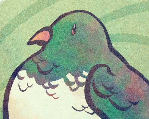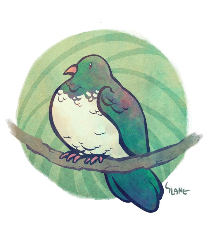 Birds are a great subject to work on; they have a combination of innate beauty and a certain goofiness that I find very relatable. The key is to strike a balance between these characteristics. The kererū design, for example, required half-a-dozen redraws at the sketch stage before I was satisfied with the exact, ideal level of roundness.