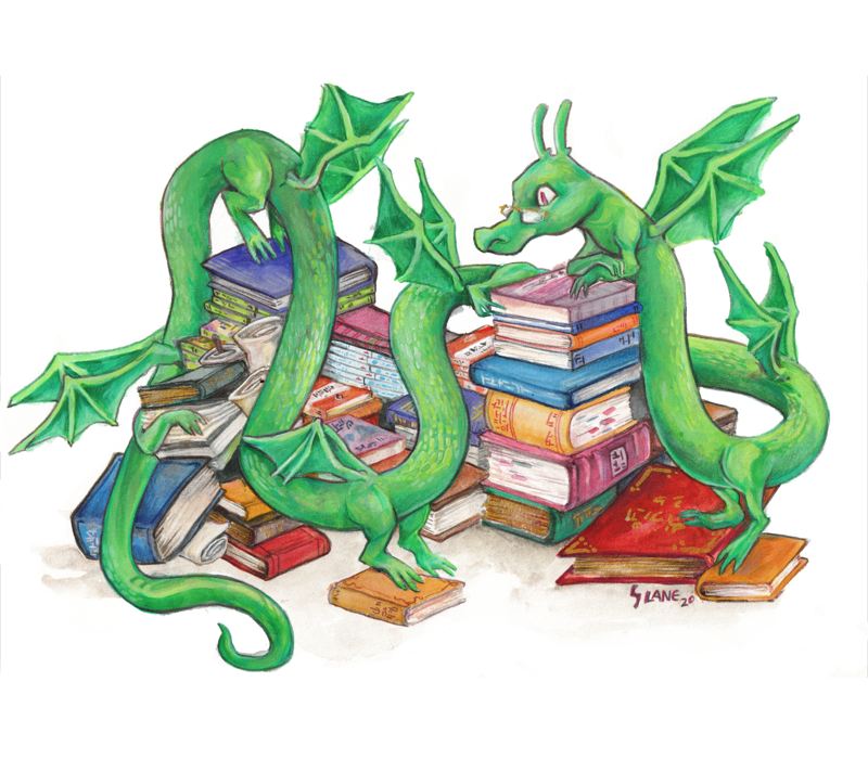 The image of a dragon sleeping on a pile of gold is a classic, which also speaks to human desires; how many of us have collections we value just as dearly as that? I've had a lot of fun exploring a range of hoards with a nerdy expression of that desire, which I feel works especially well with the dragon imagery.